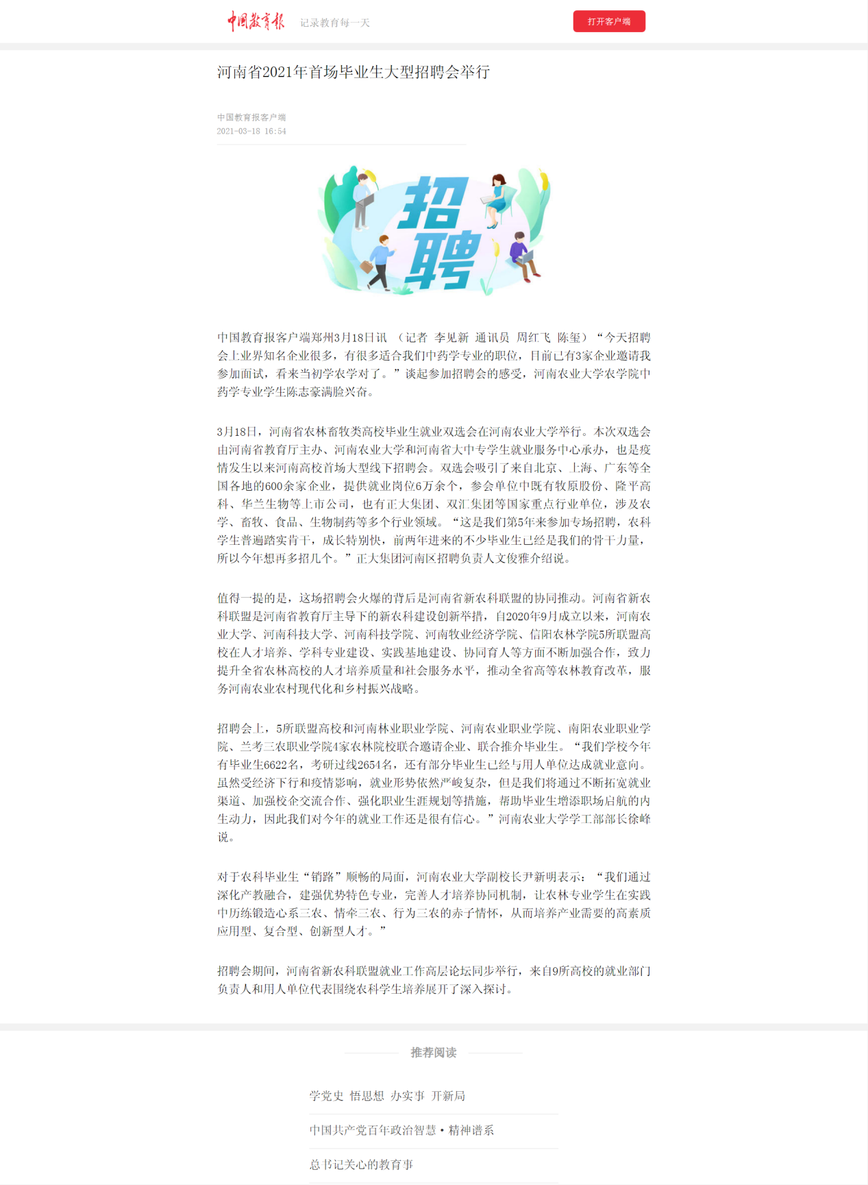 【中国青年报】河南省2021年首场毕业生大型招聘会举办