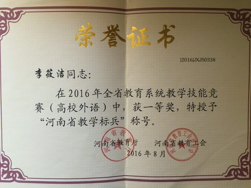 河南省教育系统教学技能竞赛一等奖:李筱洁