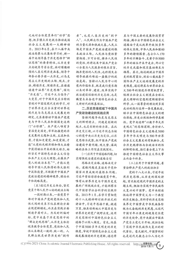 《领导科学》(中文核心):历史思维视域下中国共产党政治建设的理论逻辑与实践应用