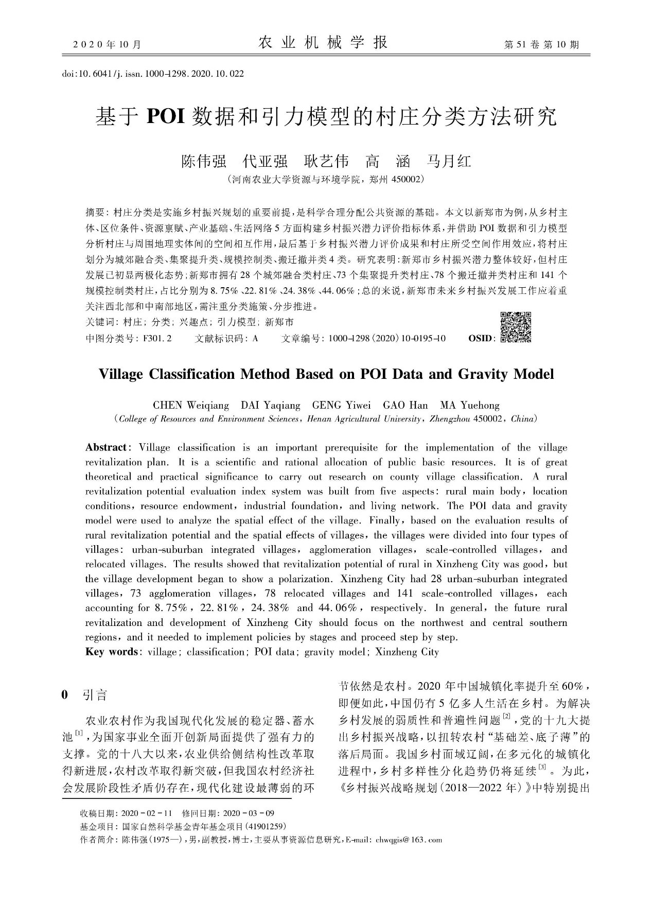 基于POI数据和引力模型的村庄分类方法研究