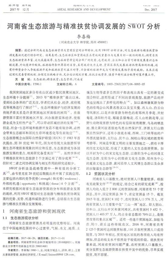 河南省生态旅游与精准扶贫协调发展的SWOT分析,《地域研究与开发》