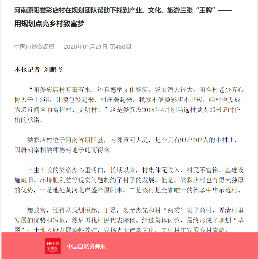 河南原阳娄彩店村在规划团队帮助下找到产业、文化、旅游三张“王牌”--中国自然资源报(栗滢超)