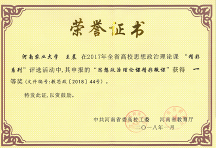 河南省高校思想政治理论课“精彩微课”一等奖——王晨