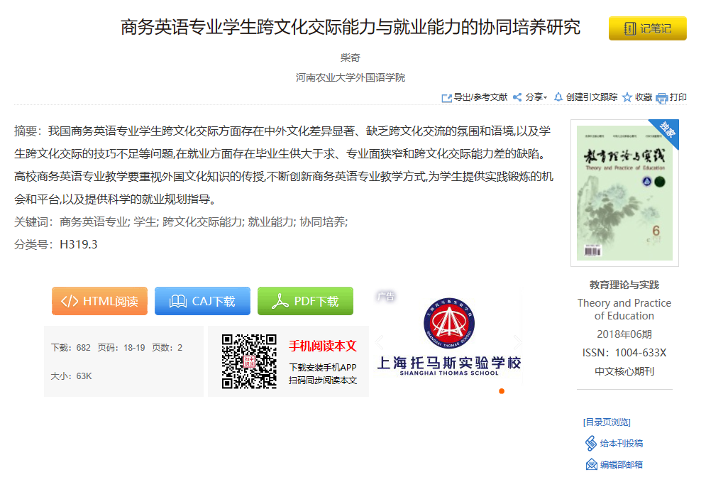 商务英语专业学生跨文化交际能力与就业能力的协同培养研究(中文核心)