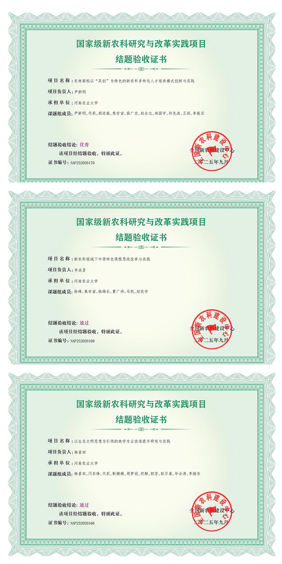 3项新农科国家级教学改革与研究项目全部高质量通过教育部验收,其中1项获评“优秀”。这些项目聚焦农林教育前沿问题,形成了可推广的改革经验,为深化农林教育教学改革提供了实践案例。