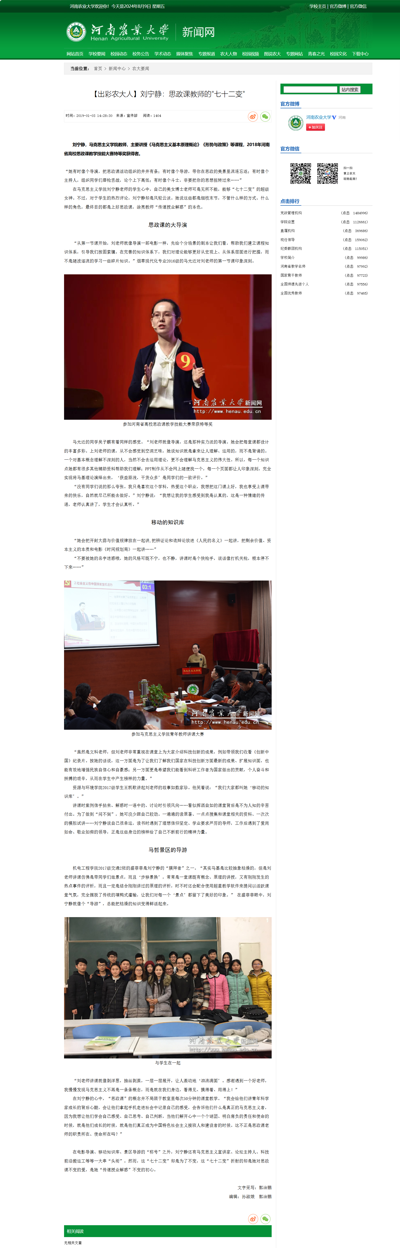 河南农业大学新闻网:出彩农大人——刘宁静:思政课教师的"七十二变"