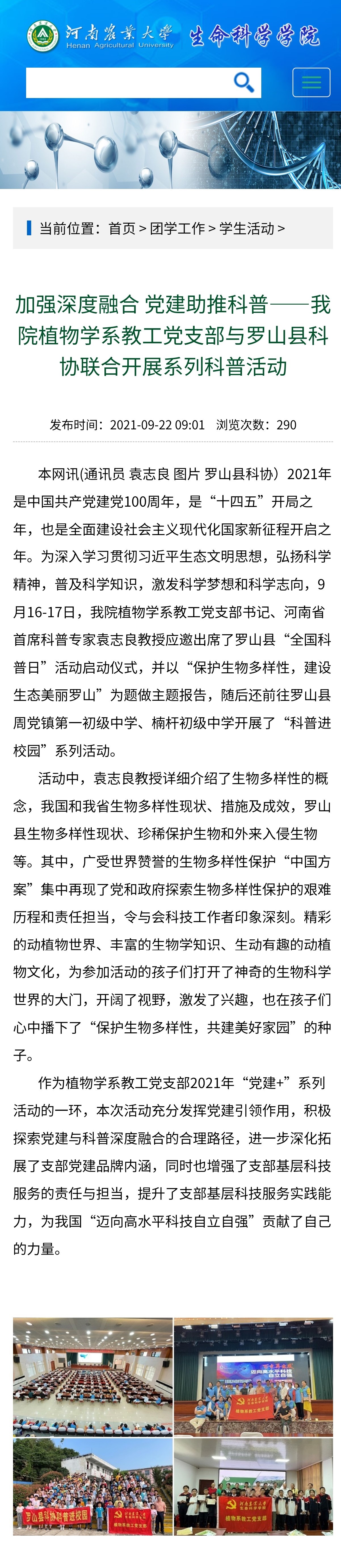 河南农业大学新闻网:加强深度融合 党建助推科普——我院植物学系教工党支部与罗山县科协联合开展系列科普活动