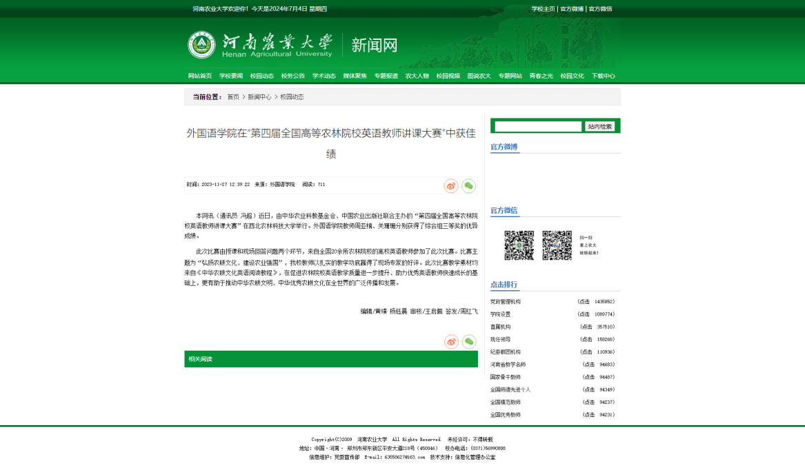 河南农业大学官网:外国语学院在“第四届全国高等农林院校英语教师讲课大赛”中获佳绩
