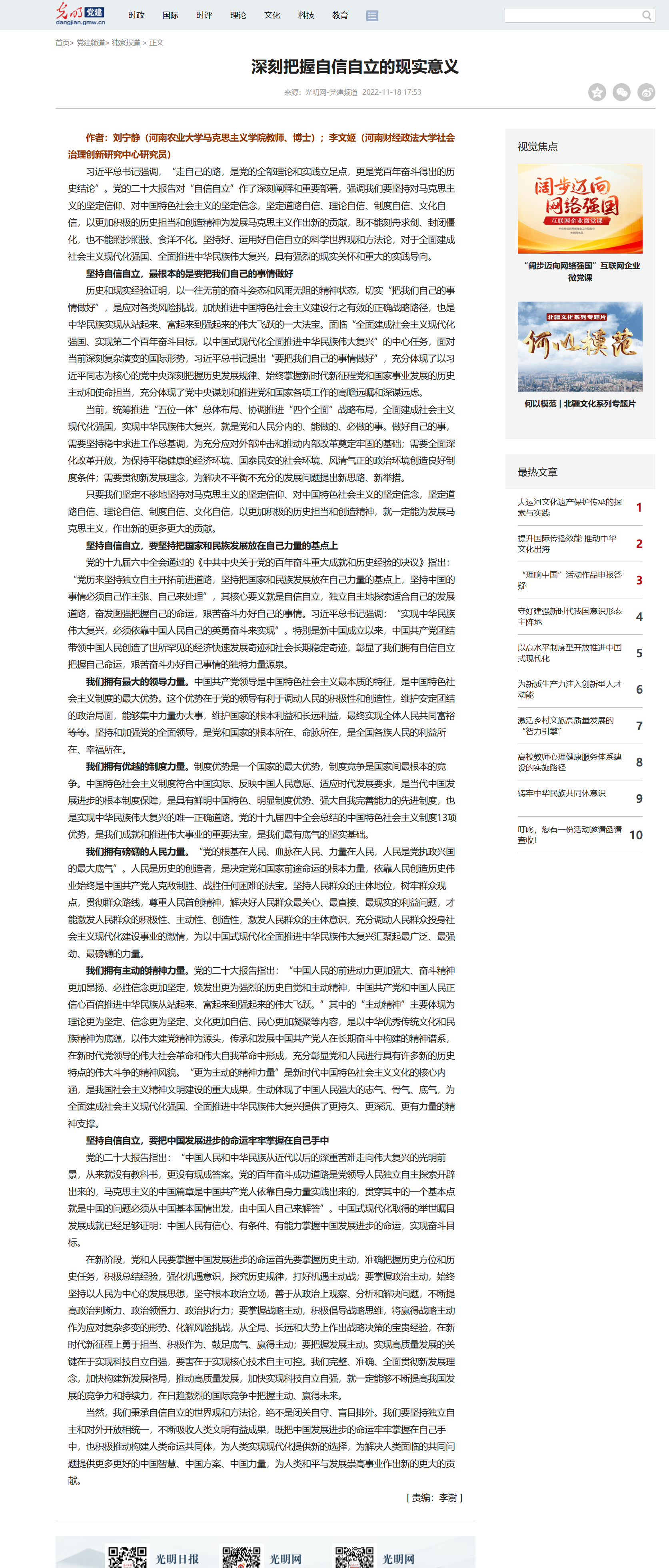 光明网:深刻把握自信自立的现实意义
