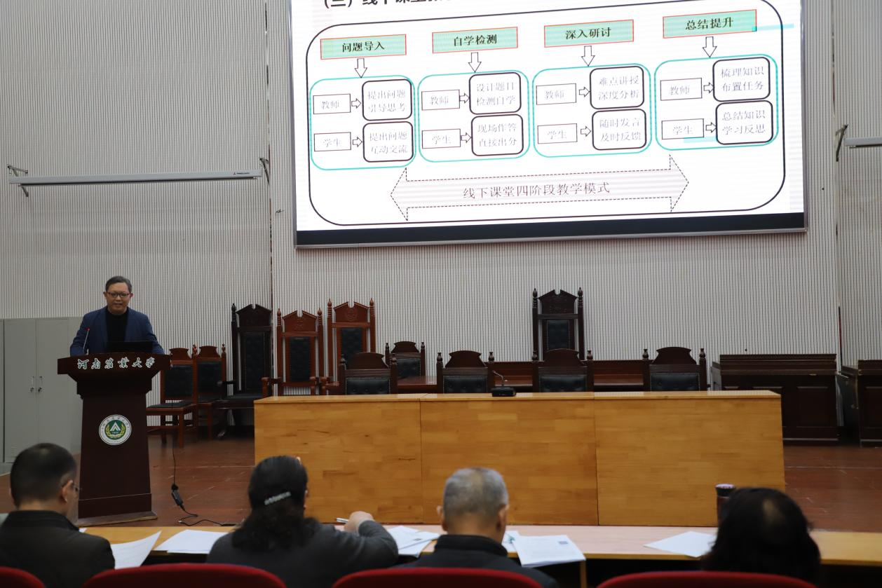 本次比赛共有五位教师参赛,各位教师依次围绕所授课程进行教学创新汇报。汇报过程中,参赛教师紧扣教学重点难点痛点问题,创新教学方法,结合学科特色与实际案例,展现了扎实的教学功底和鲜明的教学风格。立足于课堂教学真实问题,教学活动各具特色,效果显著。